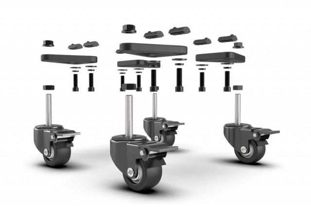 TR80-WHEELSET4 er et sett med kraftige hjul (caster wheels) utviklet for Trak Racer TR80 og andre 80/20-baserte simulatorrigger. Hjulene gjør det enkelt å flytte riggen ved behov, samtidig som den kan låses trygt på plass under bruk.